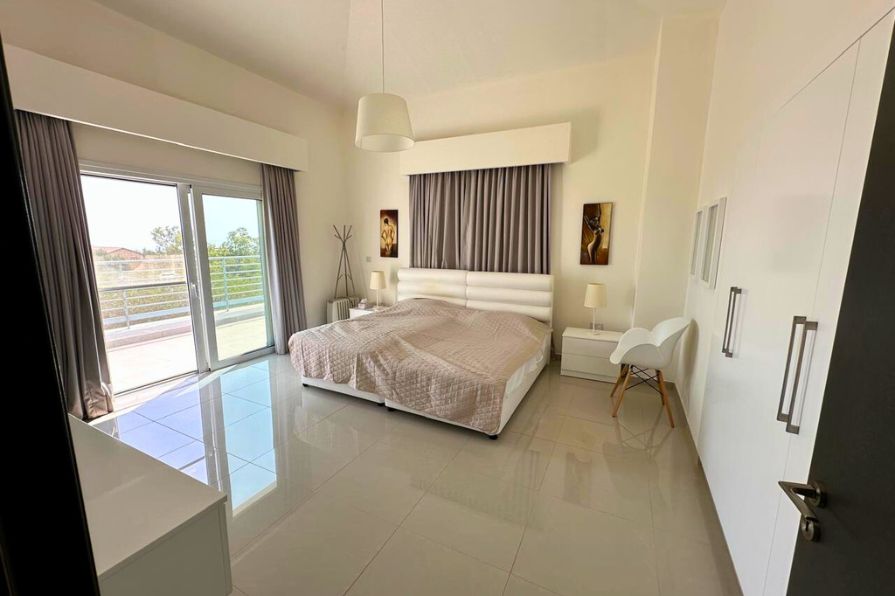 Ascending to the first floor, you’ll find four additional bedrooms, all designed to offer privacy, comfort and beautiful natural light. The master bedroom is a standout retreat with its own private en-suite bathroom and direct access to a large veranda that offers breathtaking sea views — a space it shares with one of the adjacent bedrooms, creating a serene setting to unwind, watch the sunrise, or enjoy evening breezes. The remaining bedrooms are serviced by a modern main shower room, featuring high-quality fixtures and a contemporary design that reflects the home’s refined aesthetic.