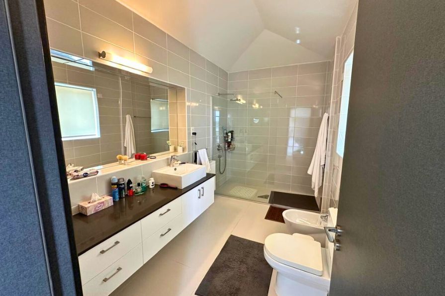 Adding a unique architectural element, the third and fourth bedrooms are creatively joined in a split-level design. The third bedroom is spacious and open, while the fourth is positioned in a stylish loft-style attic, accessed by a small internal staircase. This clever use of space is ideal for siblings, guest accommodation, or even as a dedicated playroom or private study — adding character and flexibility to the villa’s already impressive floor plan.