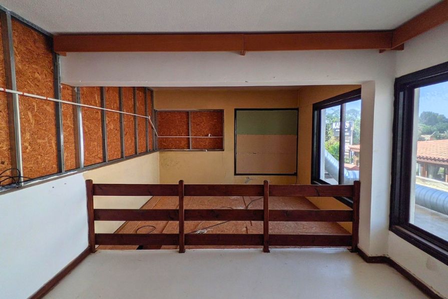 This property offers excellent potential for various business opportunities. The unit features an open-plan ground floor area, a mezzanine level, a storage room and toilets. It also includes a veranda with a pergola, a covered and uncovered balcony, and seven assigned uncovered parking spaces, ensuring easy accessibility for customers and staff.