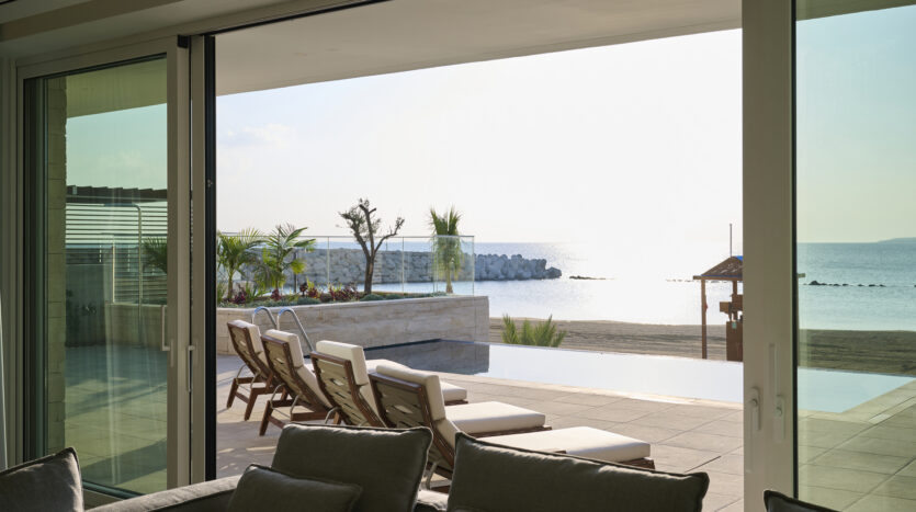 This luxurious seafront villa is located right on the beach offering an unparalleled lifestyle with its stunning views of the Mediterranean Sea!