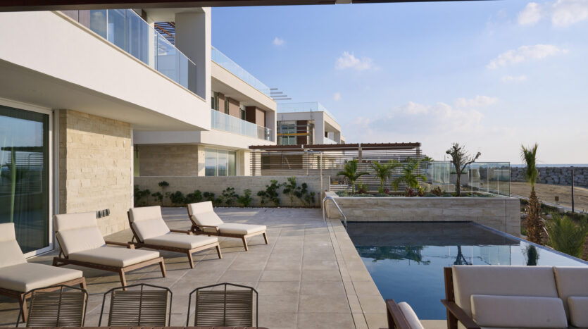 The villa benefits from a lower level floor that includes a kitchenette, bathroom, laundry room, storage and an open-plan area that can be customized to include another bedroom, gym or recreational room. It also opens out to the private garden and courtyard.