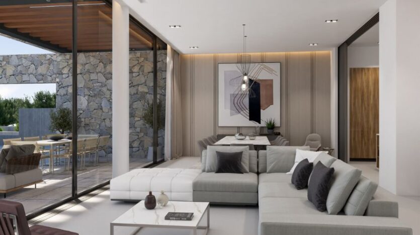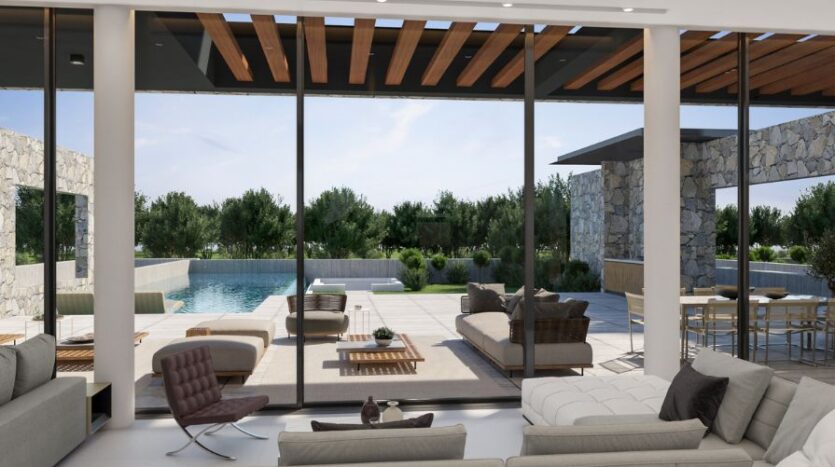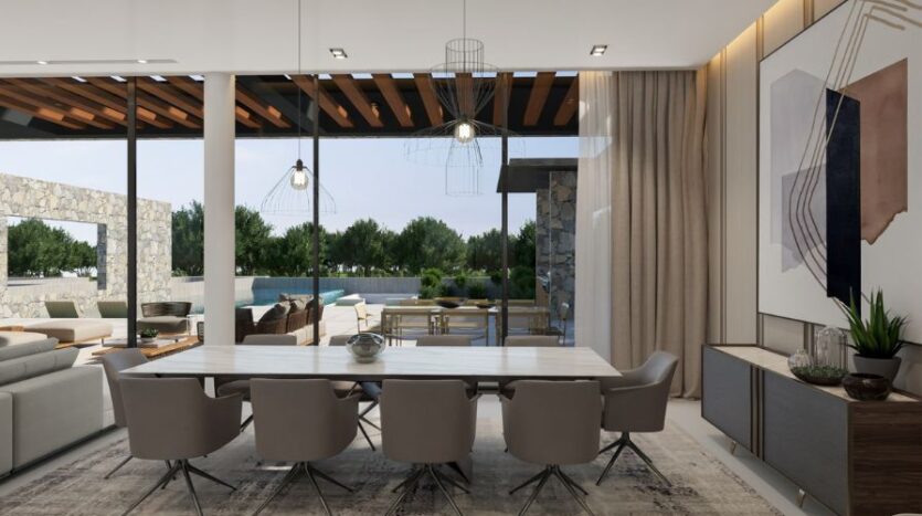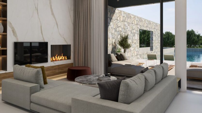 This stunning five-bedroom, four-bathroom luxury seafront villa is located along the coastline near to the landmark sculpture park in Ayia Napa, close to all amenities and famous blue flagged sandy beaches. Just a short drive to the centre of Ayia Napa and the luxury Ayia Napa Marina, you have everything in close proximity. This contemporary and stylish property offers ultimate luxury living combining natural materials and rough stone texture which blends naturally with the existing beauty of the serene backdrop.