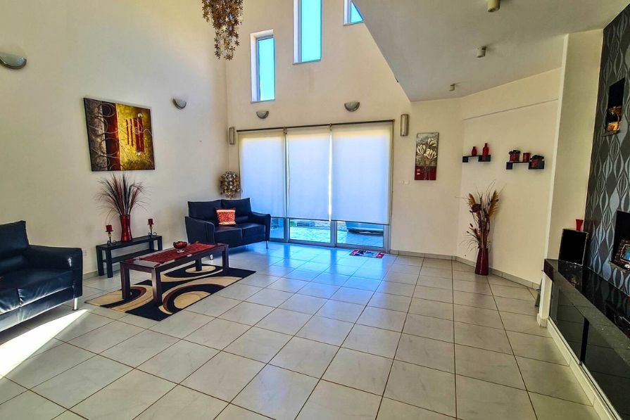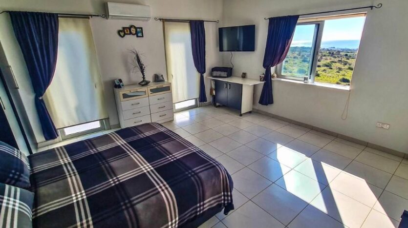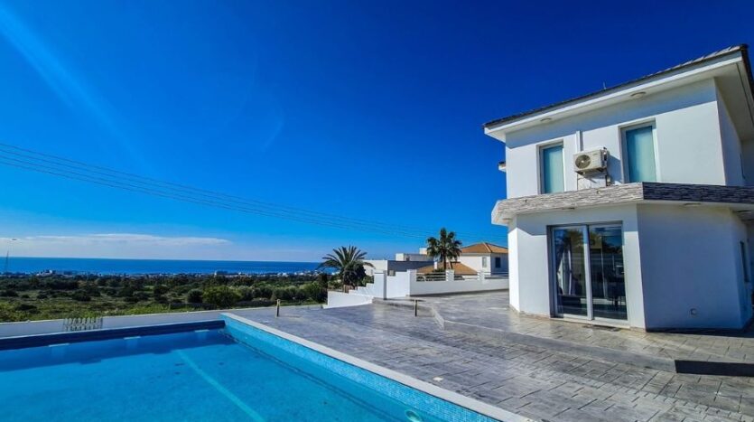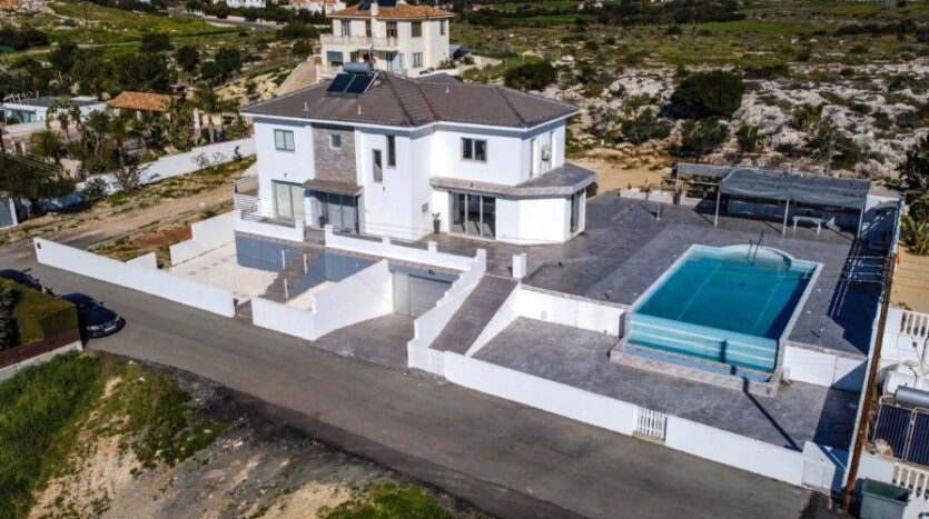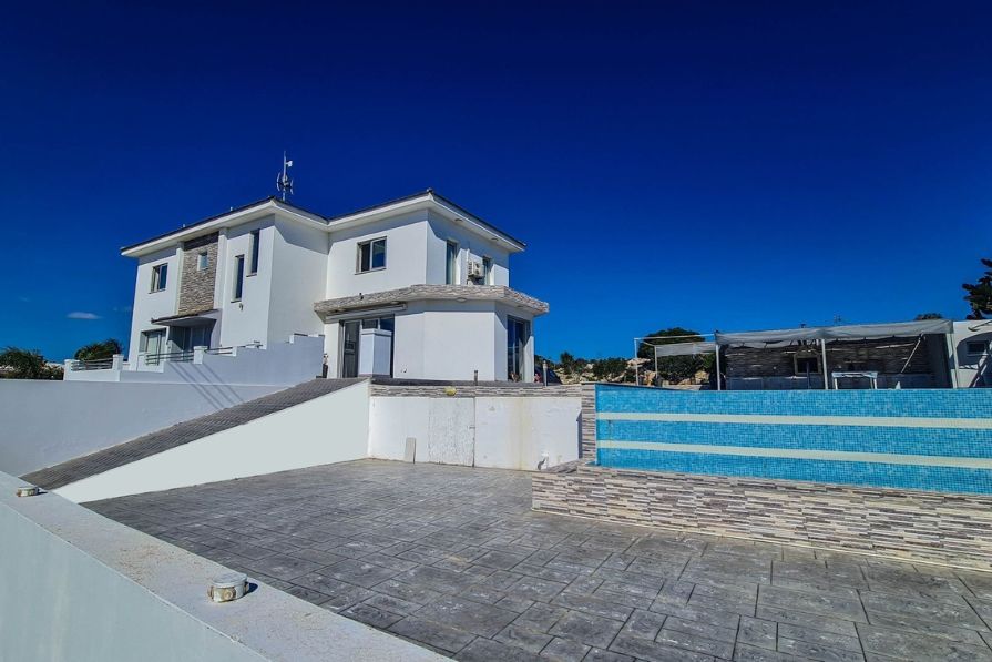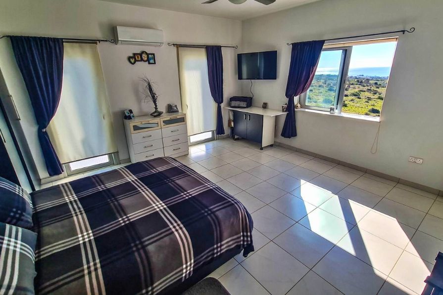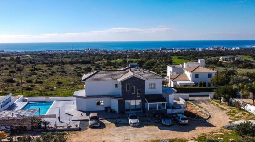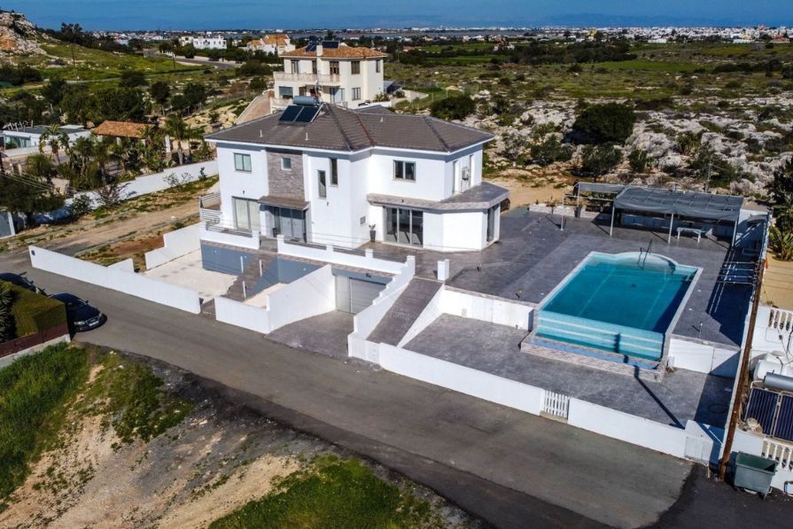 Spectacular four-bedroom, four-bathroom detached villa, with Title Deeds for Share of Land, situated in an elevated position on a huge plot in sought-after Kokkinos Gkremos, offering breathtaking views of the Mediterranean Sea. Just five minutes by car brings you to the closest beach and the cosmopolitan towns of Ayia Napa, Kapparis and Protaras, all offering more stunning beaches and an array of amenities, are just a short drive away.