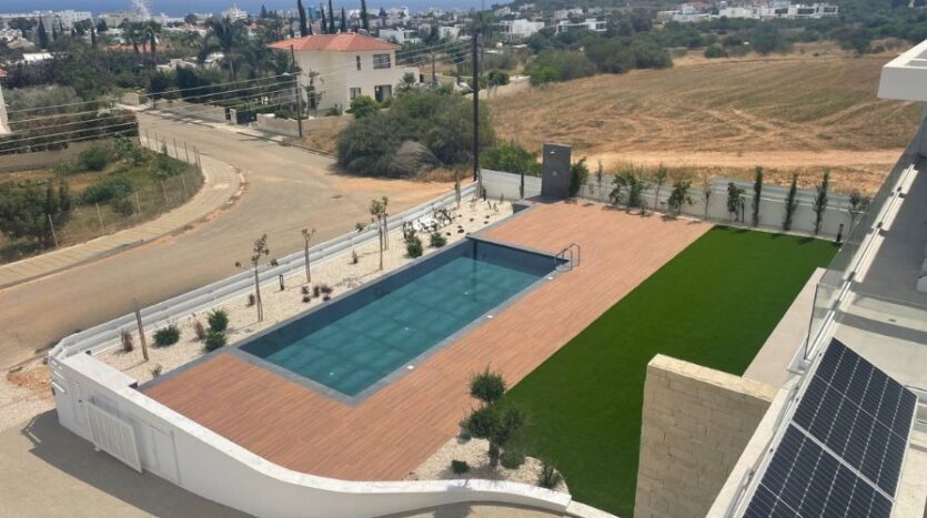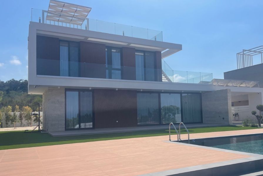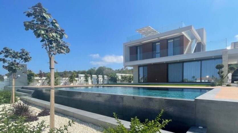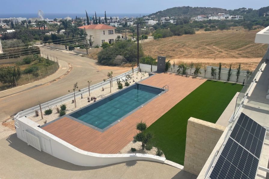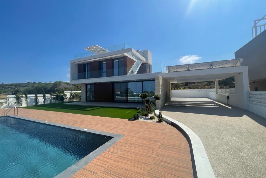 The outdoor space is perfect for enjoying the Cyprus weather, with a covered seating area, private swimming pool, outdoor kitchen and BBQ area and an outdoor shower. The villa comes with an amazing roof terrace with covered seating and a jacuzzi, promising unbeatable sea views, perfect for enjoying the breathtaking sunrises Cyprus has to offer. There is also the option for a basement. The property also enjoys covered parking for two vehicles.