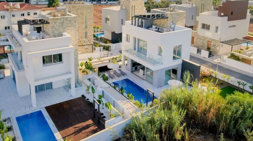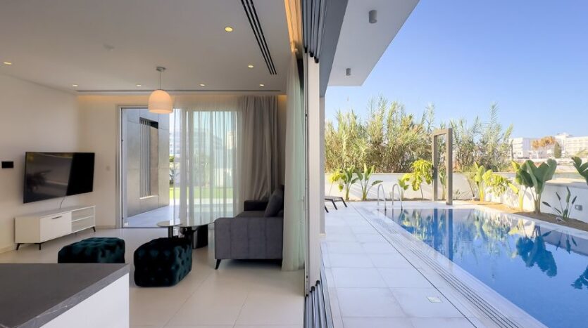 Breathtaking four-bedroom villa with a private pool, roof terrace, hot tub and sea views, set in a quiet gated complex of only eight villas in the centre of Ayia Napa. Everything you need and want is within walking distance, from a sandy Blue Flag beach to a range of amenities for your daily requirements, as well as many entertainment hotspots, both day and night.