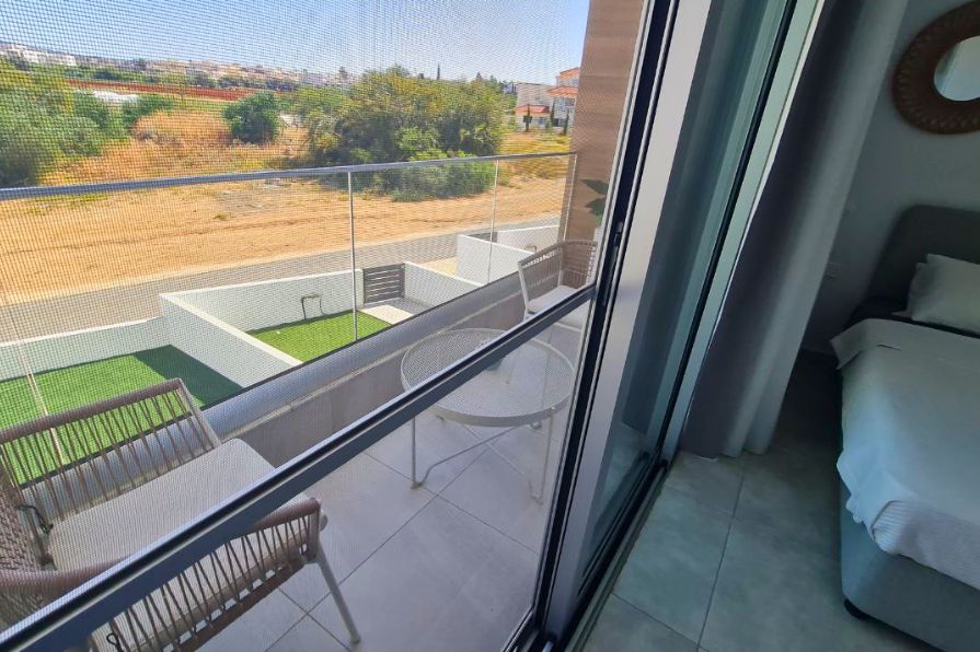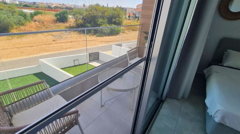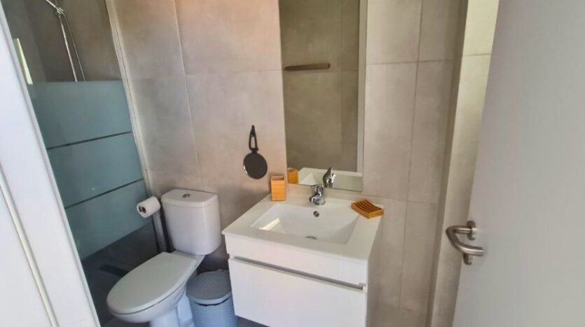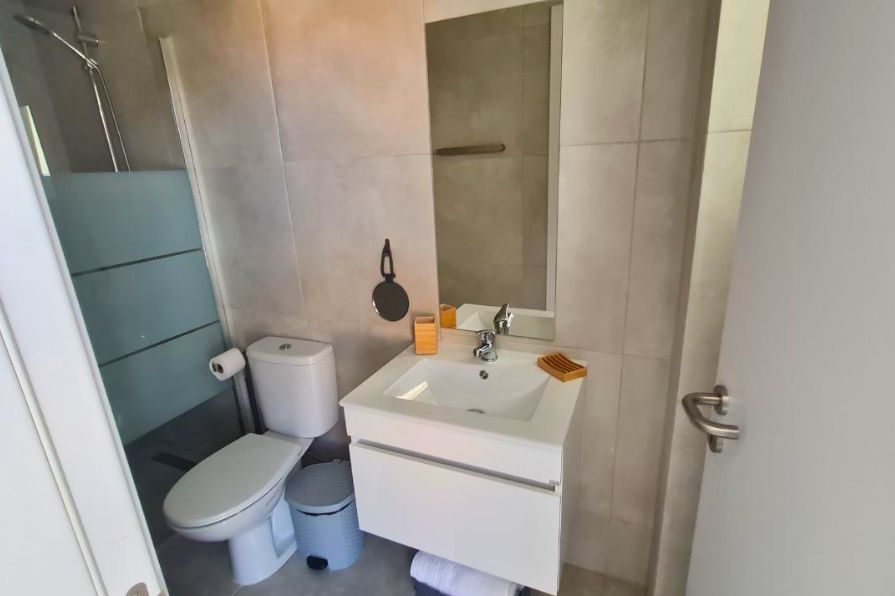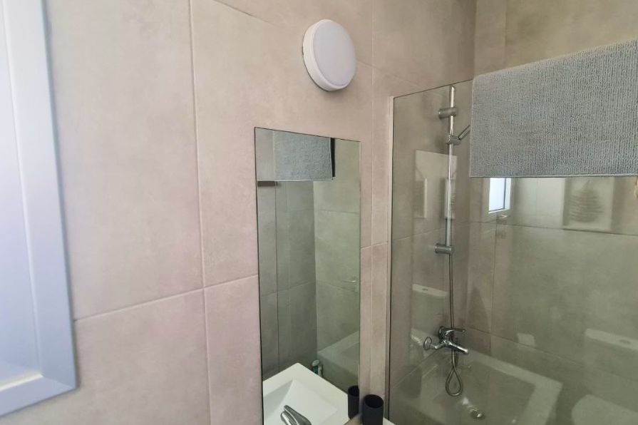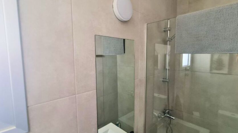 Upstairs, both bedrooms have en-suite showers, each with a private balcony and fitted wardrobes, enhancing the property’s appeal for both families and groups. Additional features such as private parking, a communal children’s playground and well-maintained shared areas further boost its desirability.