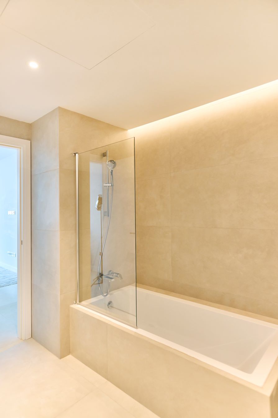 Heading down the hall, you will find two double bedrooms with fitted integrated wardrobes that share a well-appointed family bathroom. The master bedroom has the luxury of an en-suite bathroom with a tub and a shower. The bedrooms are an excellence of offering privacy and luxury for all residents.