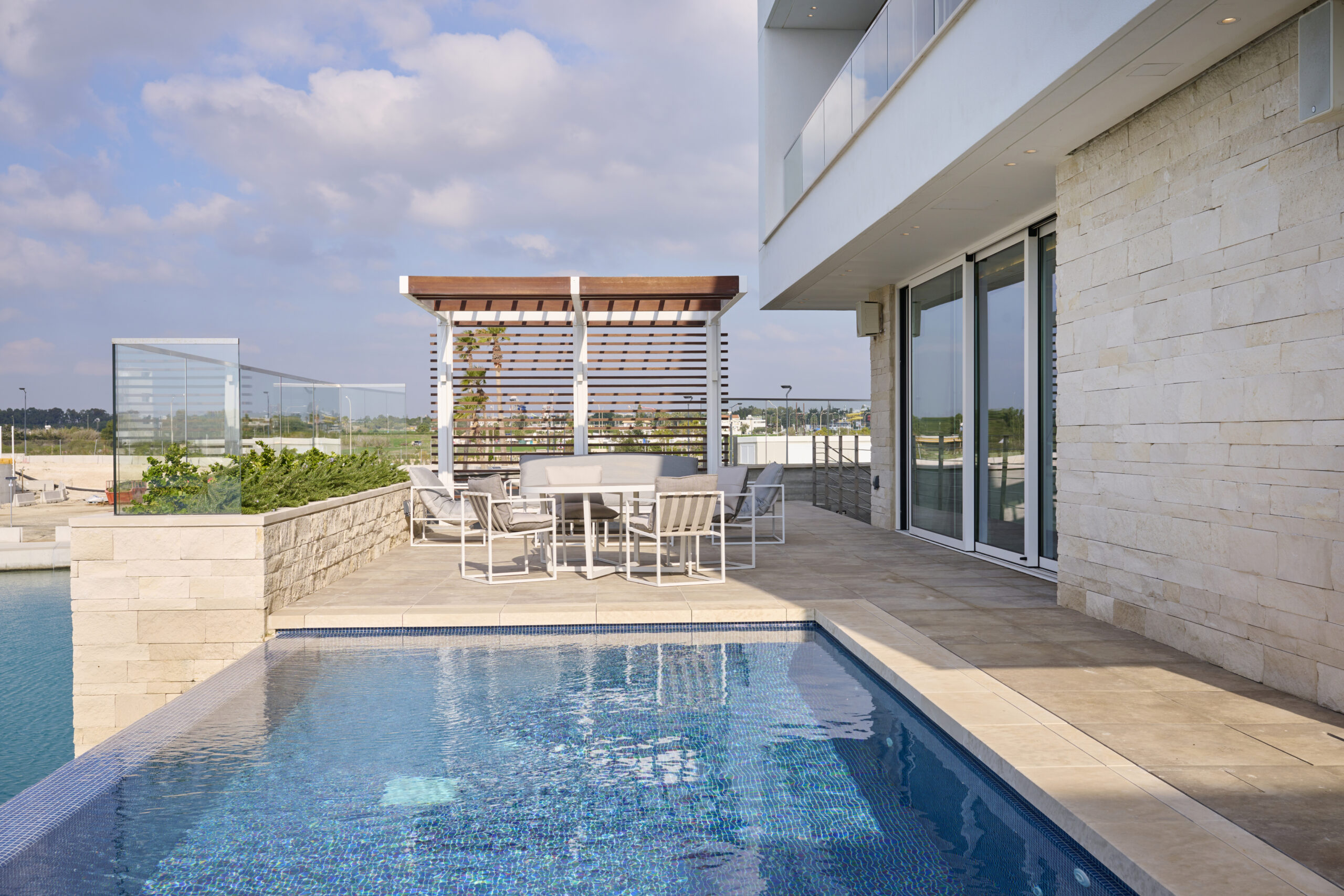 The villa benefits from a lower level floor that includes a kitchenette, bathroom, laundry room, storage and an open-plan area that can be customized to include another bedroom, gym or recreational room. It also opens out to the private garden and courtyard.