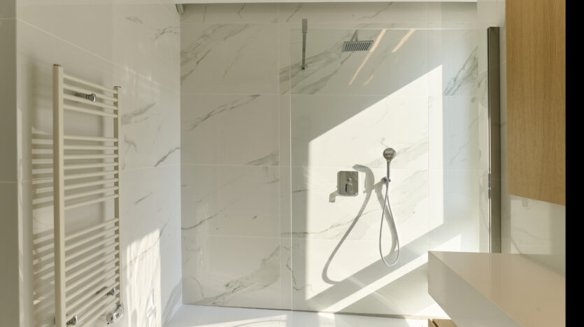 The second floor houses three double bedrooms each with fitted integrated wardrobes and ensuite bathrooms offering privacy and luxury for all residents. The villa also boosts an expansive terrace with stunning, unobstructed views of the sea—perfect for sunbathing, dining, or simply relaxing while enjoying the surroundings.