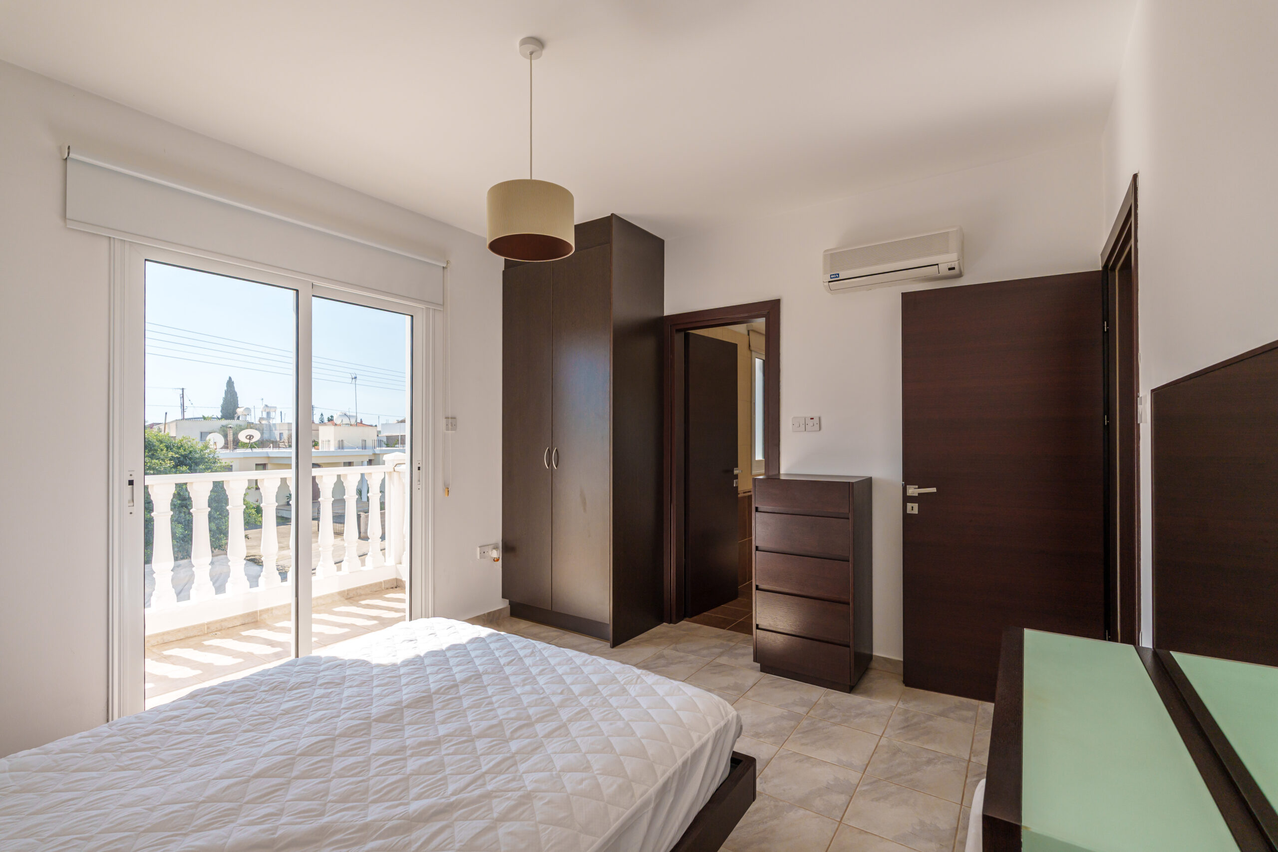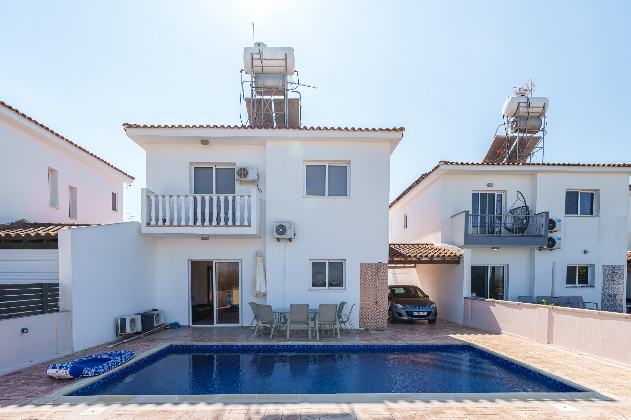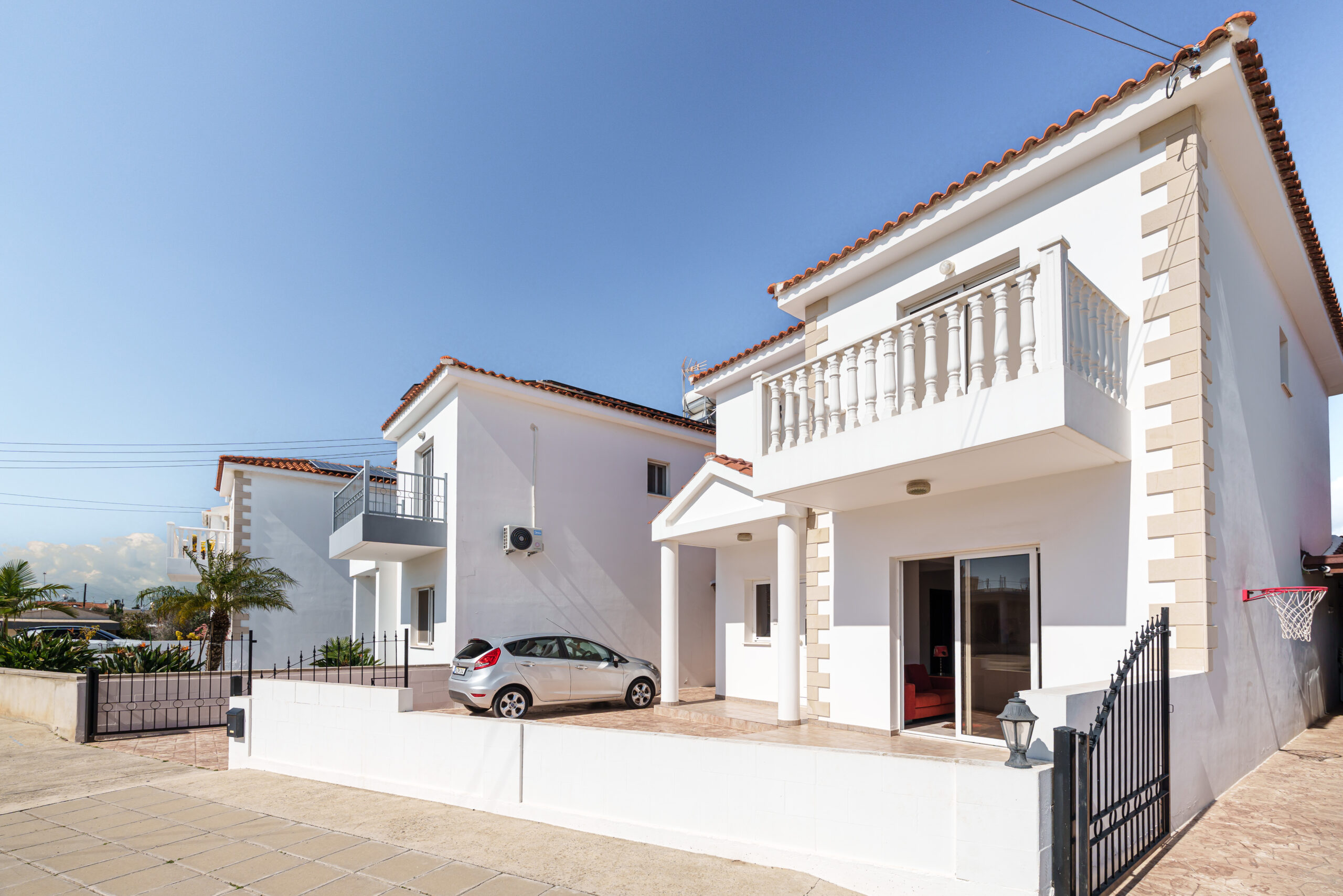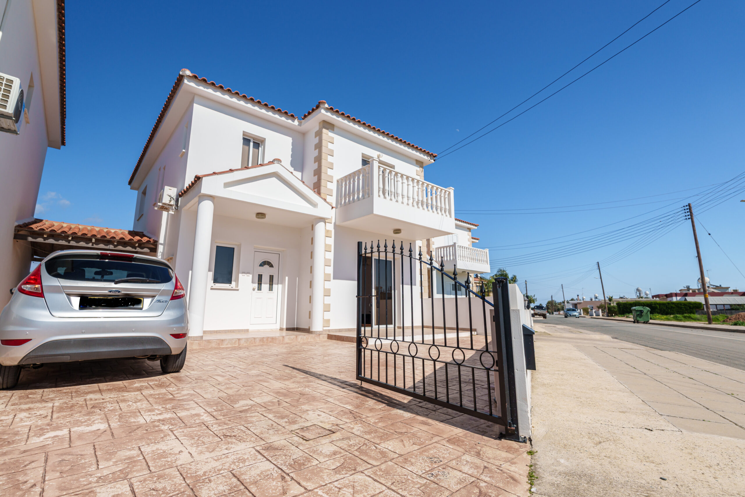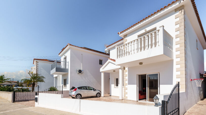 Upstairs, the property features three generously sized bedrooms, including a master with an en-suite shower, along with a main bathroom with a bathtub. Two of the bedrooms enjoy private balconies with lovely views across Sotira.