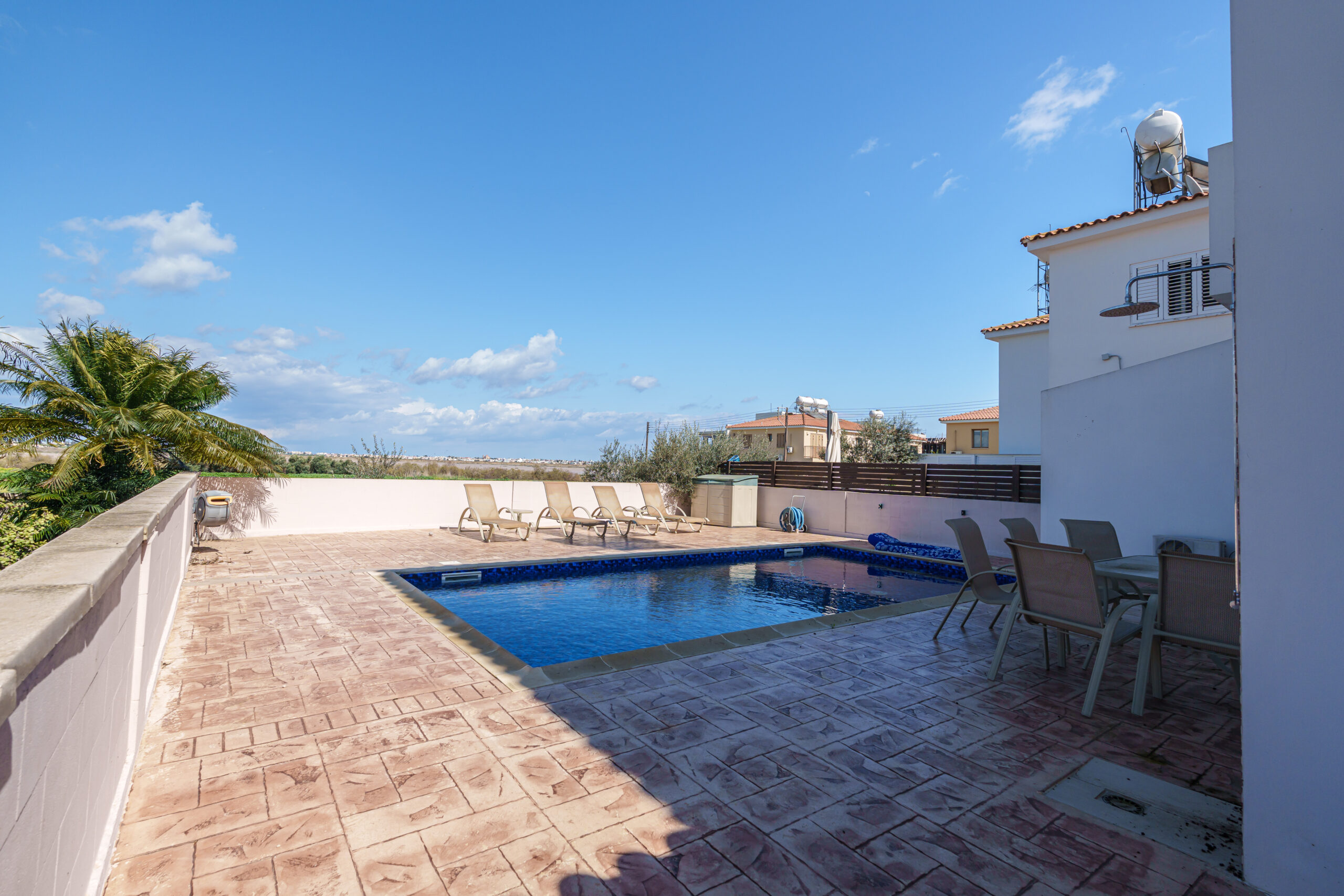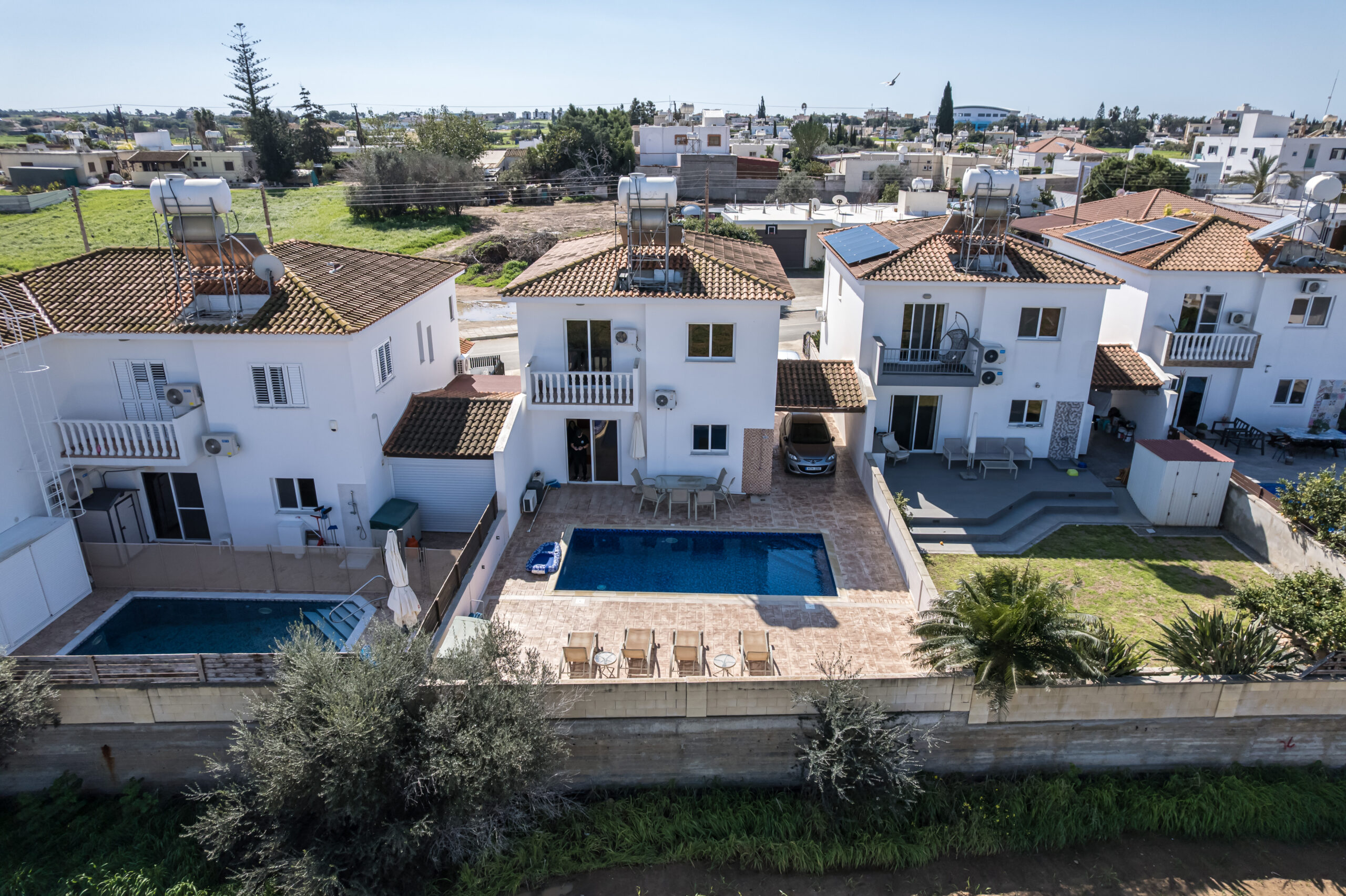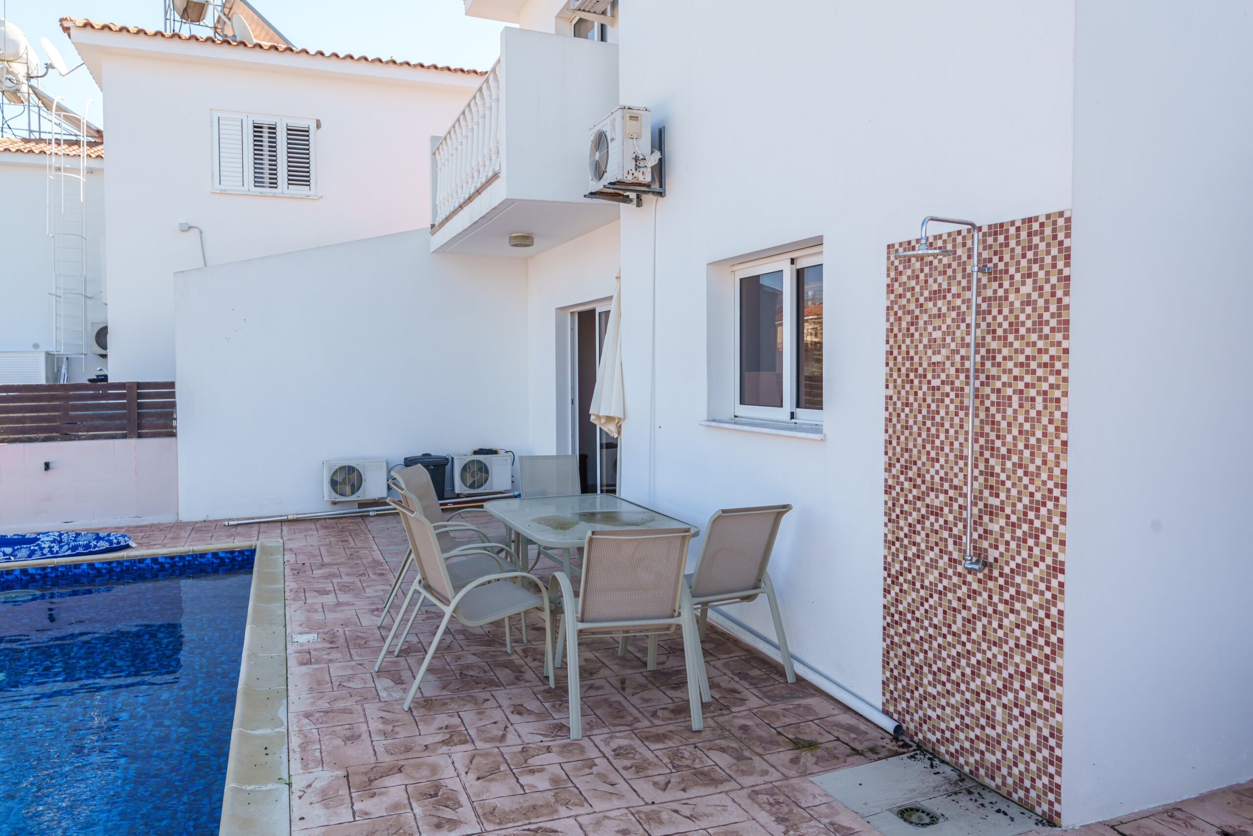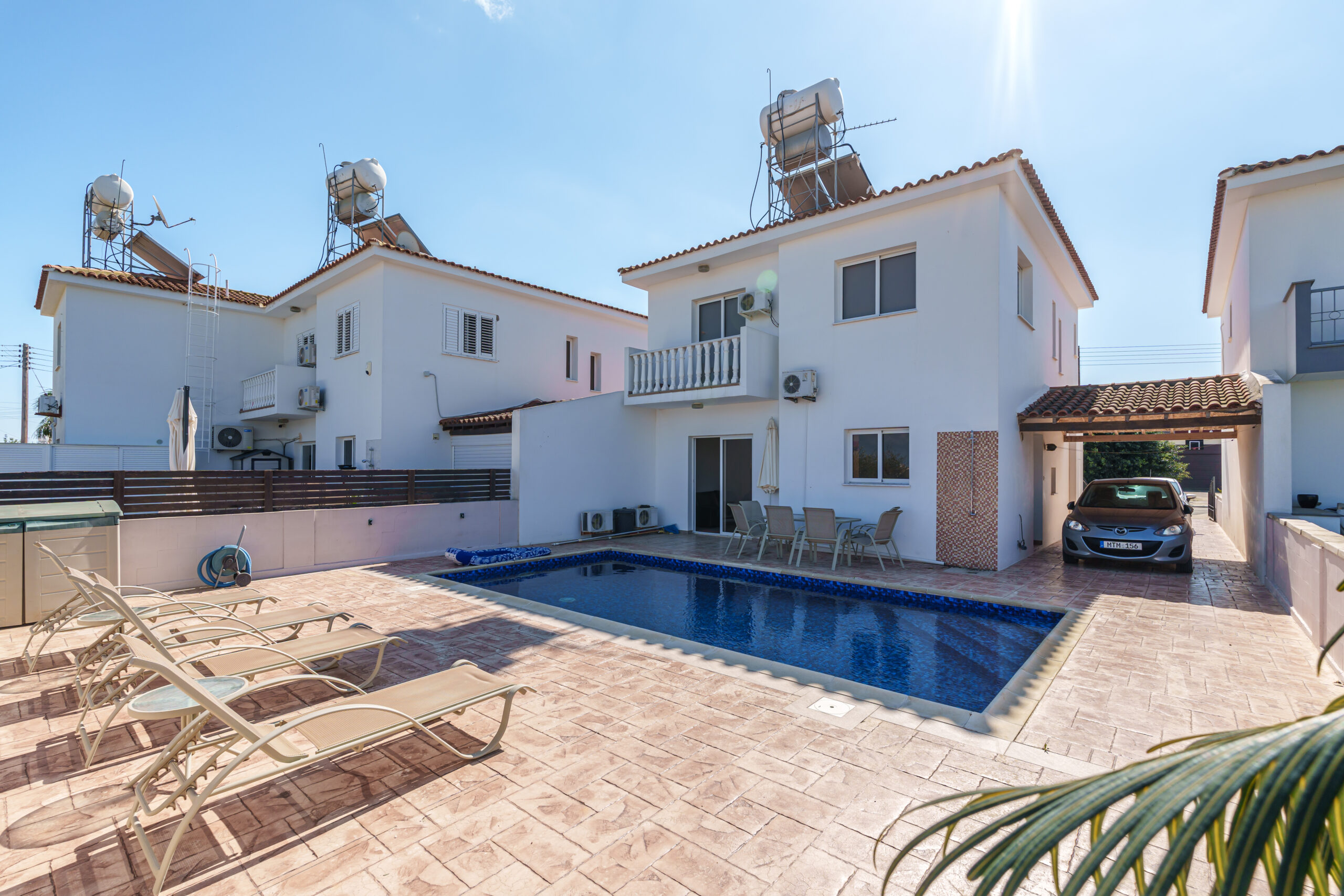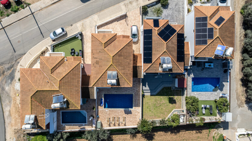 Upstairs, the property features three generously sized bedrooms, including a master with an en-suite shower, along with a main bathroom with a bathtub. Two of the bedrooms enjoy private balconies with lovely views across Sotira.