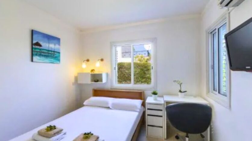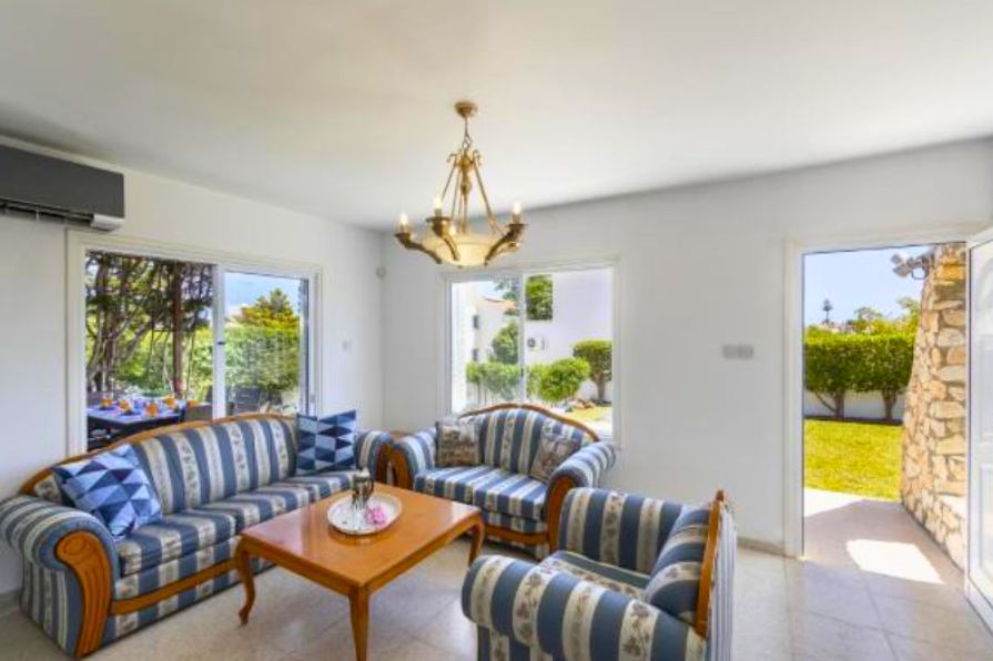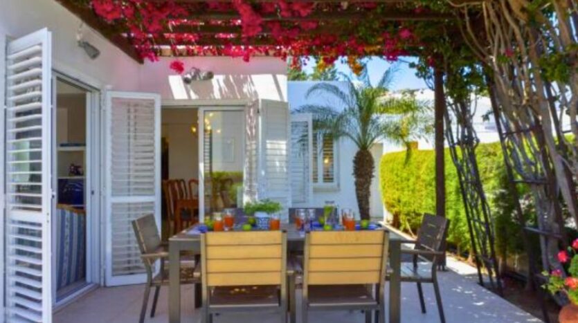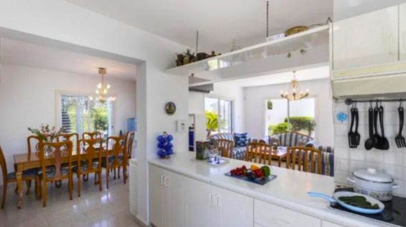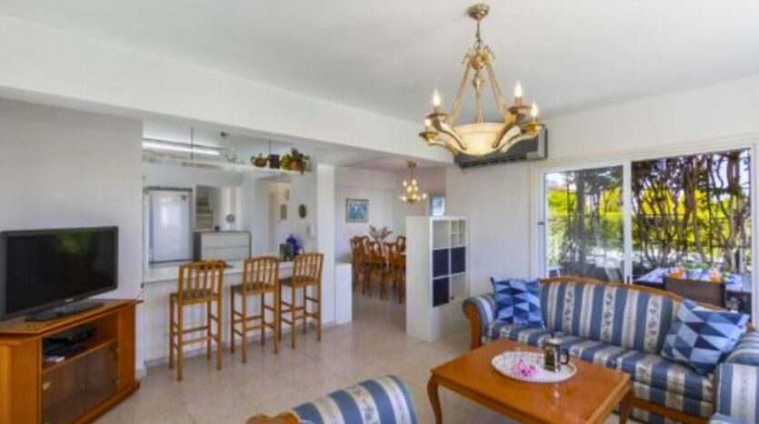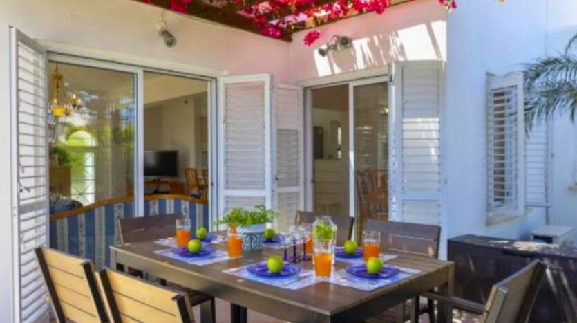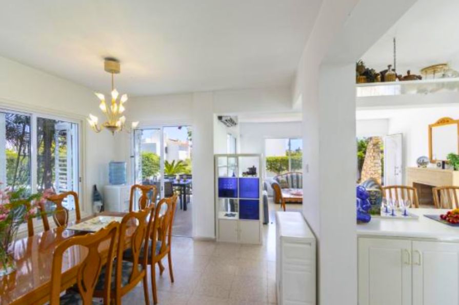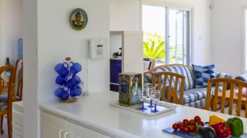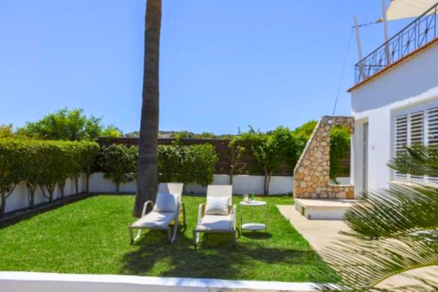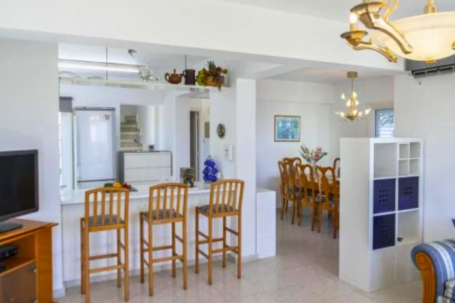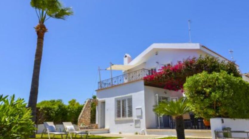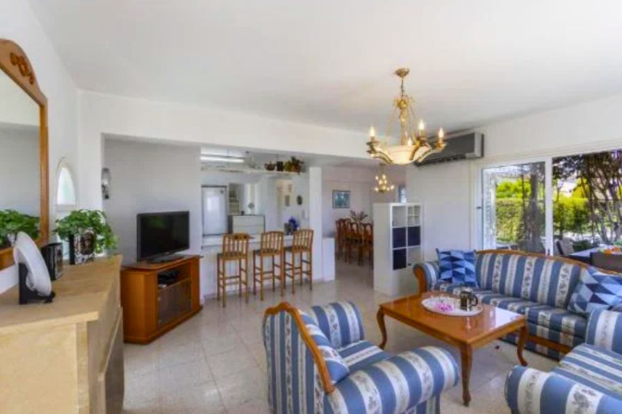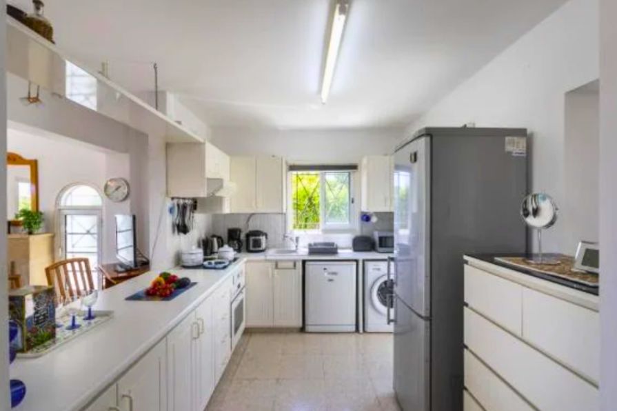 The villa is surrounded by beautifully landscaped gardens and includes a charming pergola with a comfortable seating area, ideal for outdoor dining or entertaining guests. Private parking is also available on the property. Additionally, every room in the house is fitted with air conditioning, ensuring a cool and pleasant atmosphere throughout the year. This villa perfectly combines modern comforts with coastal charm in one of Cyprus’s most desirable locations.