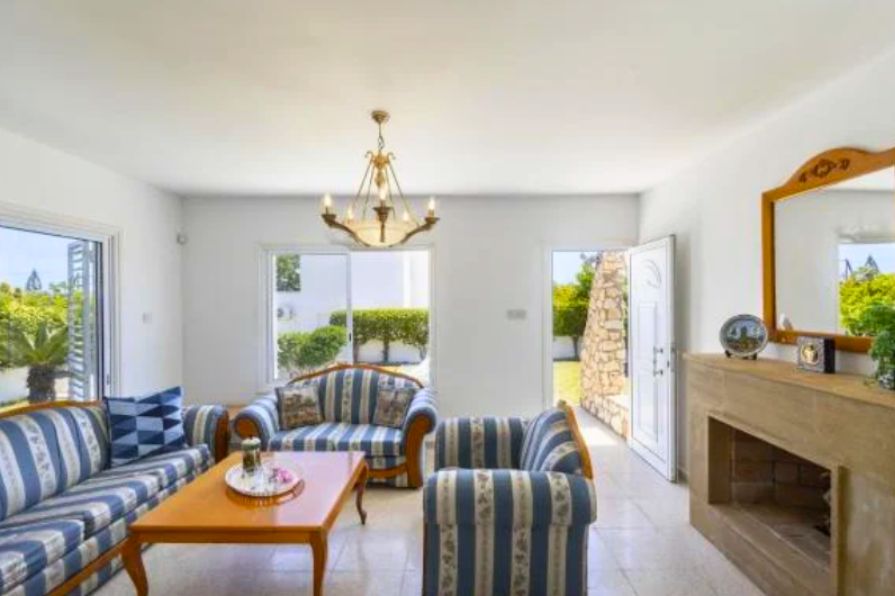 This stunning four-bedroom detached villa in Protaras offers an exceptional opportunity for permanent living or a luxurious holiday retreat. Boasting full title deeds for peace of mind, the property is fully furnished and ready to move into. The villa features a bright and spacious open-plan design that combines comfort and style. The inviting living room includes a decorative fireplace, creating a warm and elegant ambiance, while the fully fitted kitchen comes complete with modern appliances and a stylish kitchen bar, ideal for casual dining or entertaining.