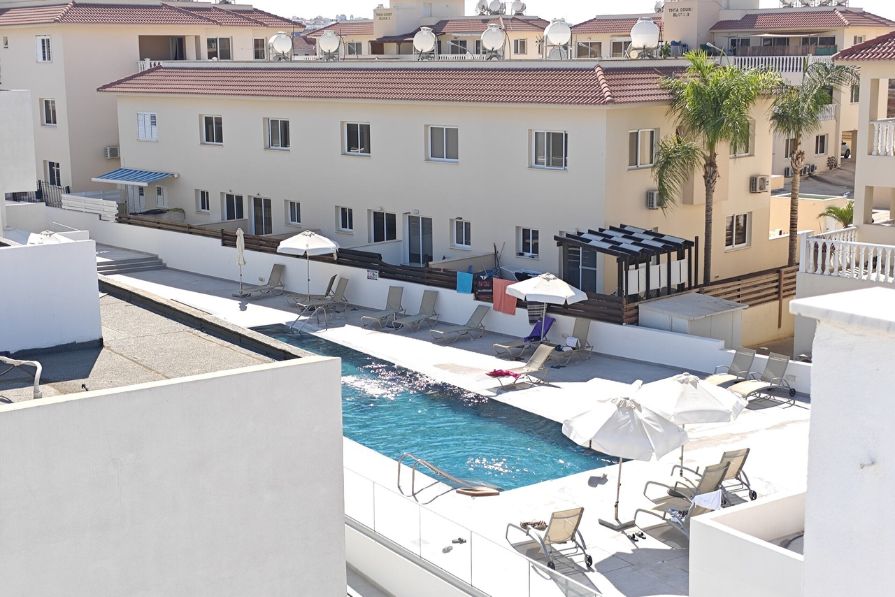 Superb two-bedroom, first-floor apartment with a communal swimming pool, less than 1km to the beach in popular Kapparis. Perfectly situated just a fifteen-minute walk to the nearest sandy beach and just seven minutes to the all-year-round amenities such as shops, bars and restaurants, you have everything you need close by.