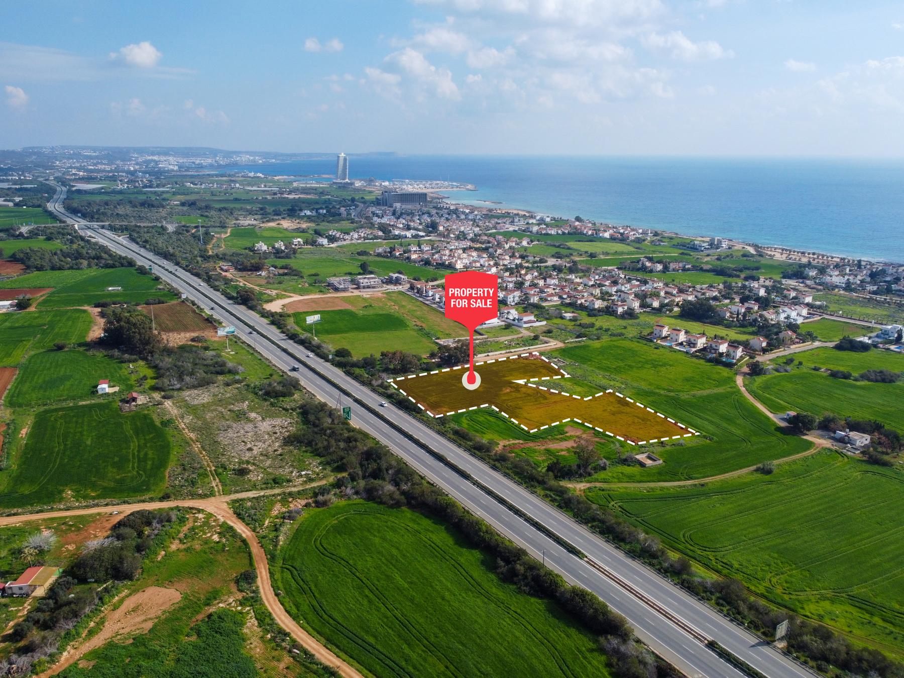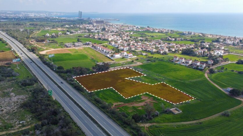 The property boasts an expansive, predominantly level terrain with an irregular yet highly versatile configuration, offering excellent potential for upscale development. It enjoys direct access via a registered road along its eastern boundary, ensuring ease of connectivity and infrastructure readiness. The northern boundary adjoins the Larnaca–Ayia Napa motorway, enhancing accessibility to key regional destinations.